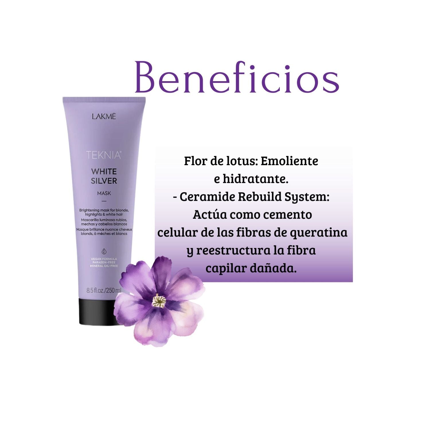 - Flor de lotus: Emoliente e hidratante. - Ceramide Rebuild System: Actúa como cemento celular de las fibras de queratina y reestructura la fibra capilar dañada.