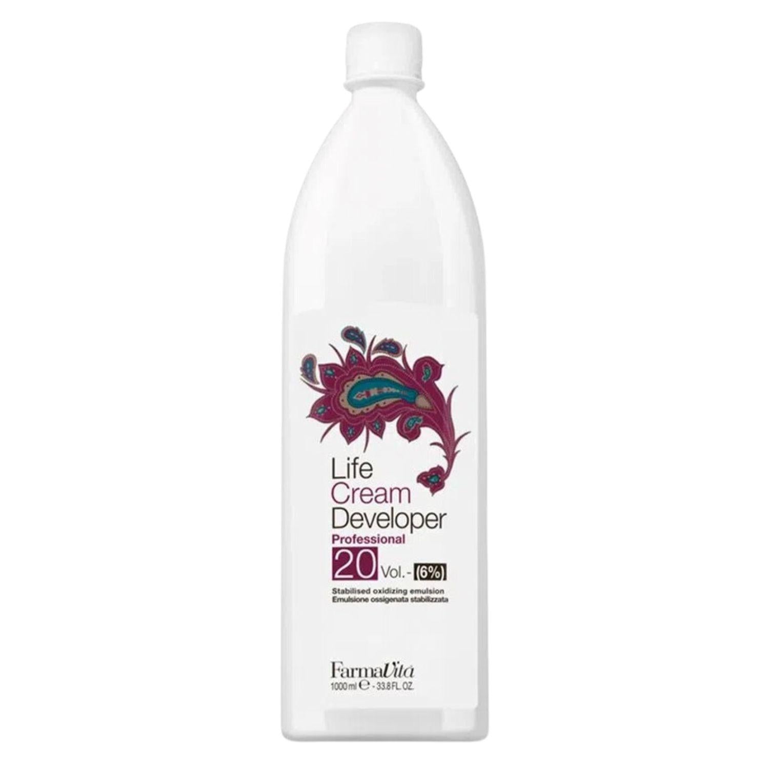 Oxidante Life Cream Developer 20vol. 6 porciento de Farmavita, es una crema oxidante de uso profesional, de fórmulasuave y delicada, indicada para mezclar con colorantes o decolorantes FarmavitaLife.